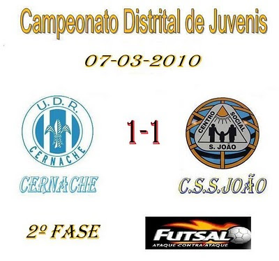 Na segunda metade o ritmo de jogo quebrou um pouco mas o Cernache com mais posse de bola pois o resultado não interessava. Num mau passe do São João o Cernache aproveita e sai remate fraco por alto e Telmo dá um "frango" monumental com a bola a passar entre a mãos e assim o Cernache consegue o empate. O São João utiliza o jogador volante mas não conseguiu passar novamente para a frente do marcador ficando o resultado em 1-1.